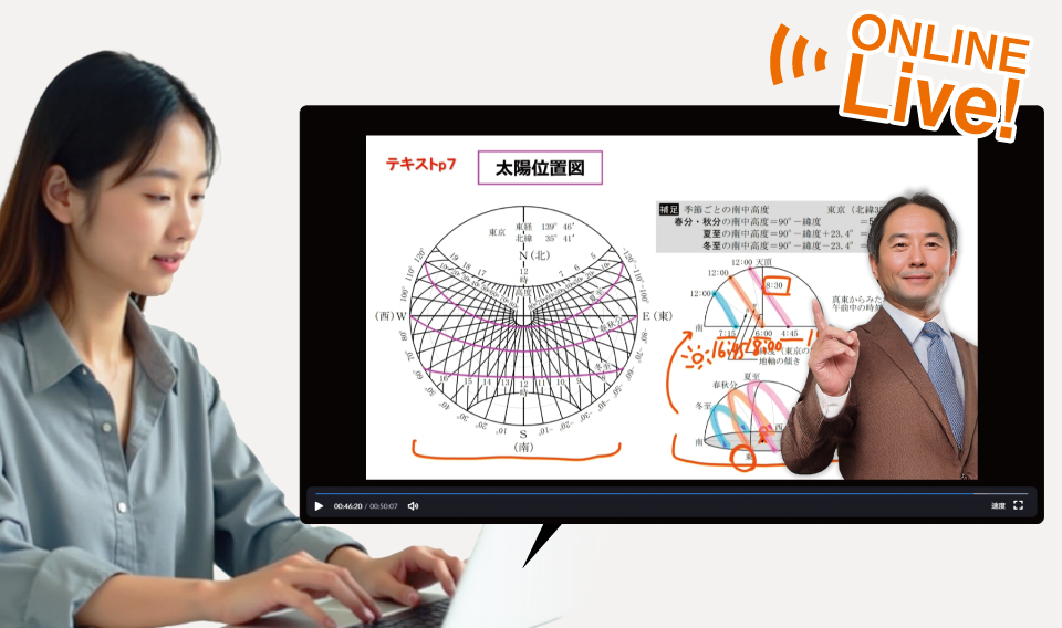 ※必ず受講確認事項(受講(視聴)に必要な環境・機器/受講(視聴)に必要な事項/講義資料に関して)をご確認ください。「令和9年度受験 建築士 学科オンラインLIVEコース受講確認事項」はこちらをご確認ください。