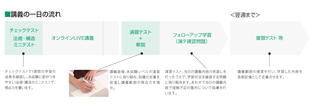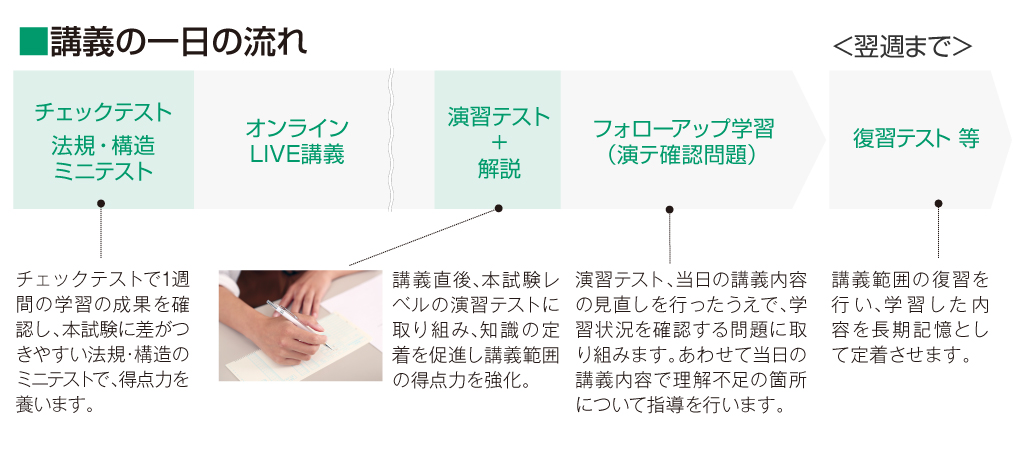 | WEB早期基礎講座 | 学科講座(オンラインLIVE) | 学科本試験 |