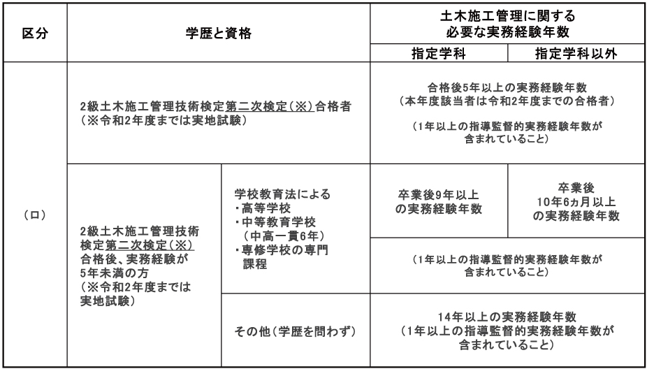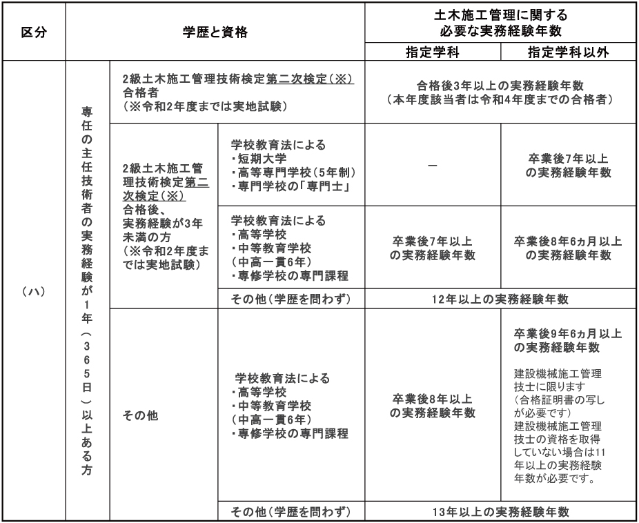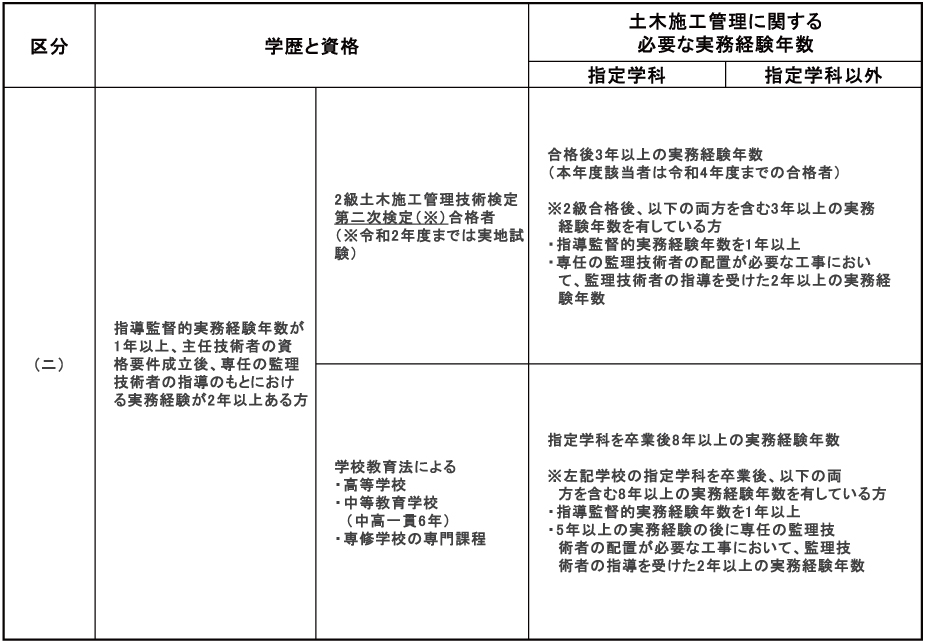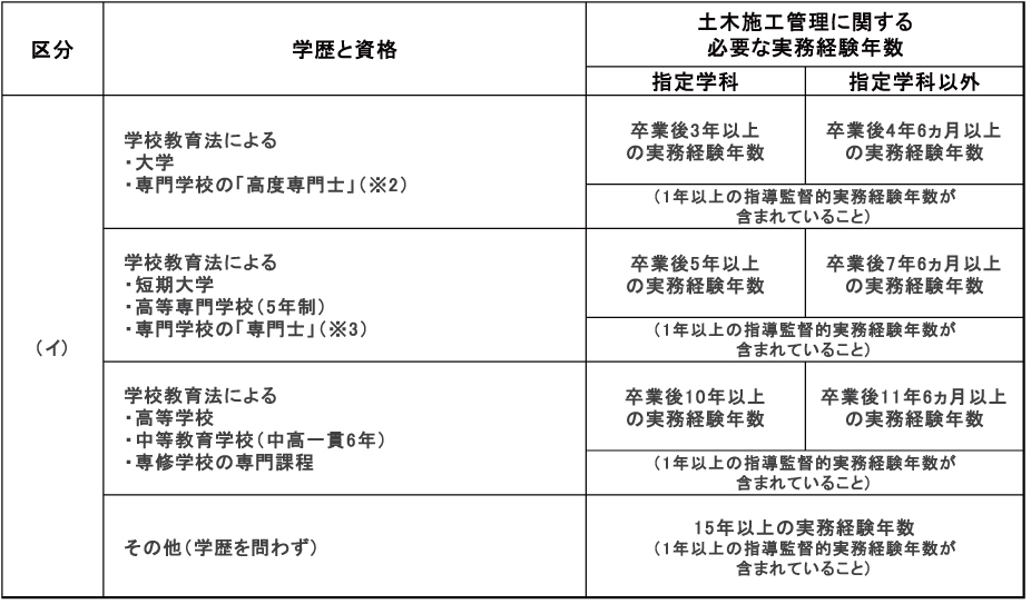 - ※実務経験の内容及び年数、指導監督的実務経験、実務経験の証明等については、受検の手引きを参照してください。