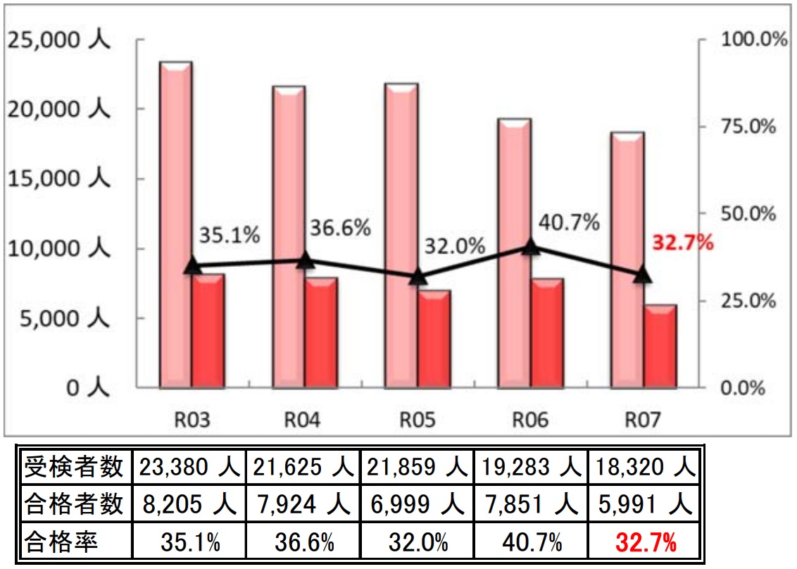 令和7年度の合格率は、昨年度を大きく下回る結果に