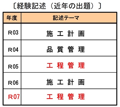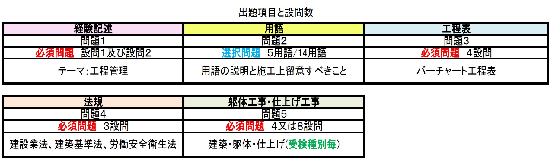 問題1(経験記述)は、【工程管理】が出題されました。令和6年度から設問1では3種(新築、解体、改修)の工事概要が示され、その中から1つを選択し、その工事概要について解答する出題形式に変更されました。