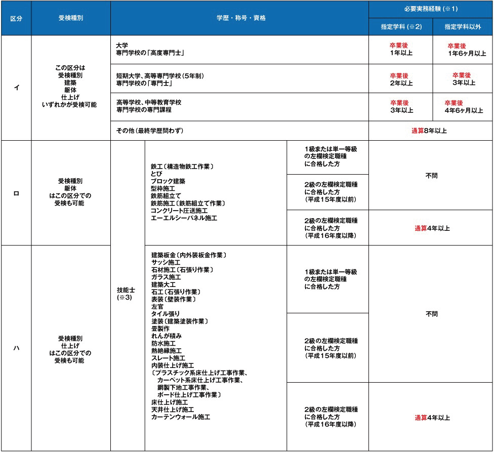- 2級建築施工管理技術検定の受検資格について