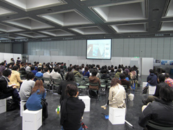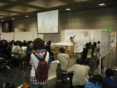 来場者の前で、理解しやすいプレゼンテーションを行う、藤岡さん