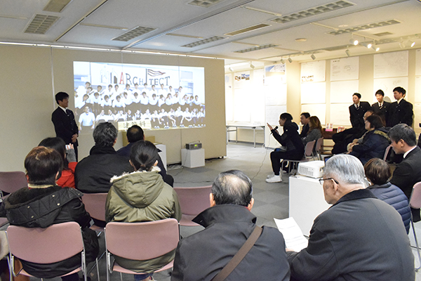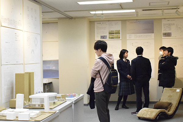 様々な方々のご協力のもと、校外で初めて卒業作品展を催すことができました。今回、保護者や友人、一般の方々に自分の作品を見てもらえるということで、生徒たちの取り組み方も例年に増して真剣なものになったと感じています。卒業制作にあたり、前年6月頃までに設計コンセプトを決定、7月に実際の計画地に赴くなどフィールドワークを通じて情報収集をし、9月から実制作に入りました。作品を作るということは終わりのないものであって、昨日までブラッシュアップをかけている生徒もおりました。納得がいくまでやりきりたいとの想いを感じられたこと、嬉しく思います。また生徒全員、達成感を感じていると確信しております。来年以降もこのような活動を続けられるよう、教諭一同努力を続けてまいります。