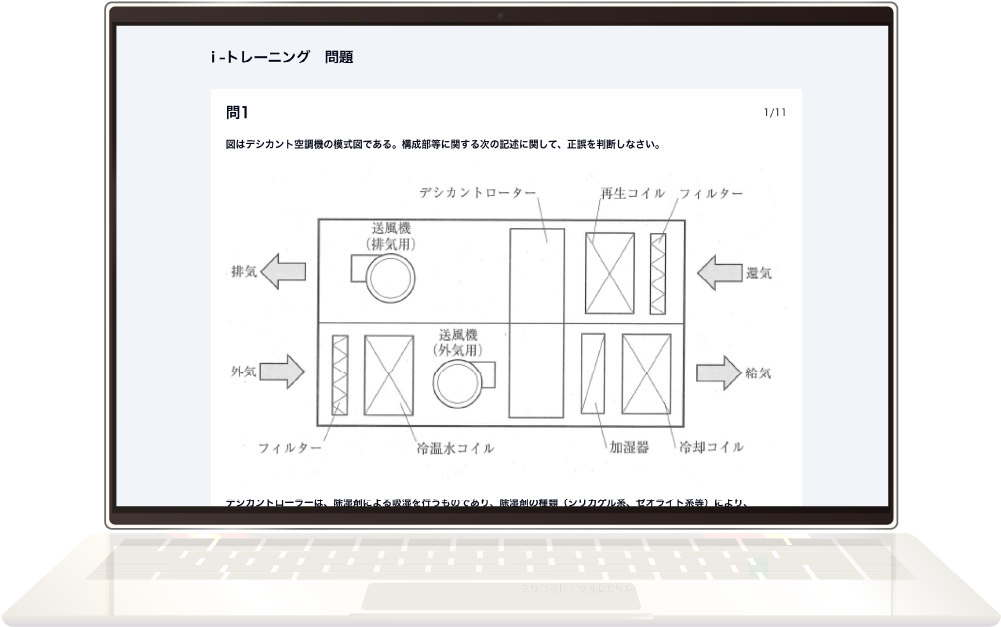 講義内のテスト問題や試験の過去問などが収録されています。i-トレーニングでは、それらの問題を活用し、様々な条件で問題トレーニングを行うことができます。