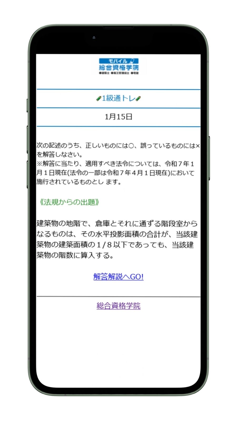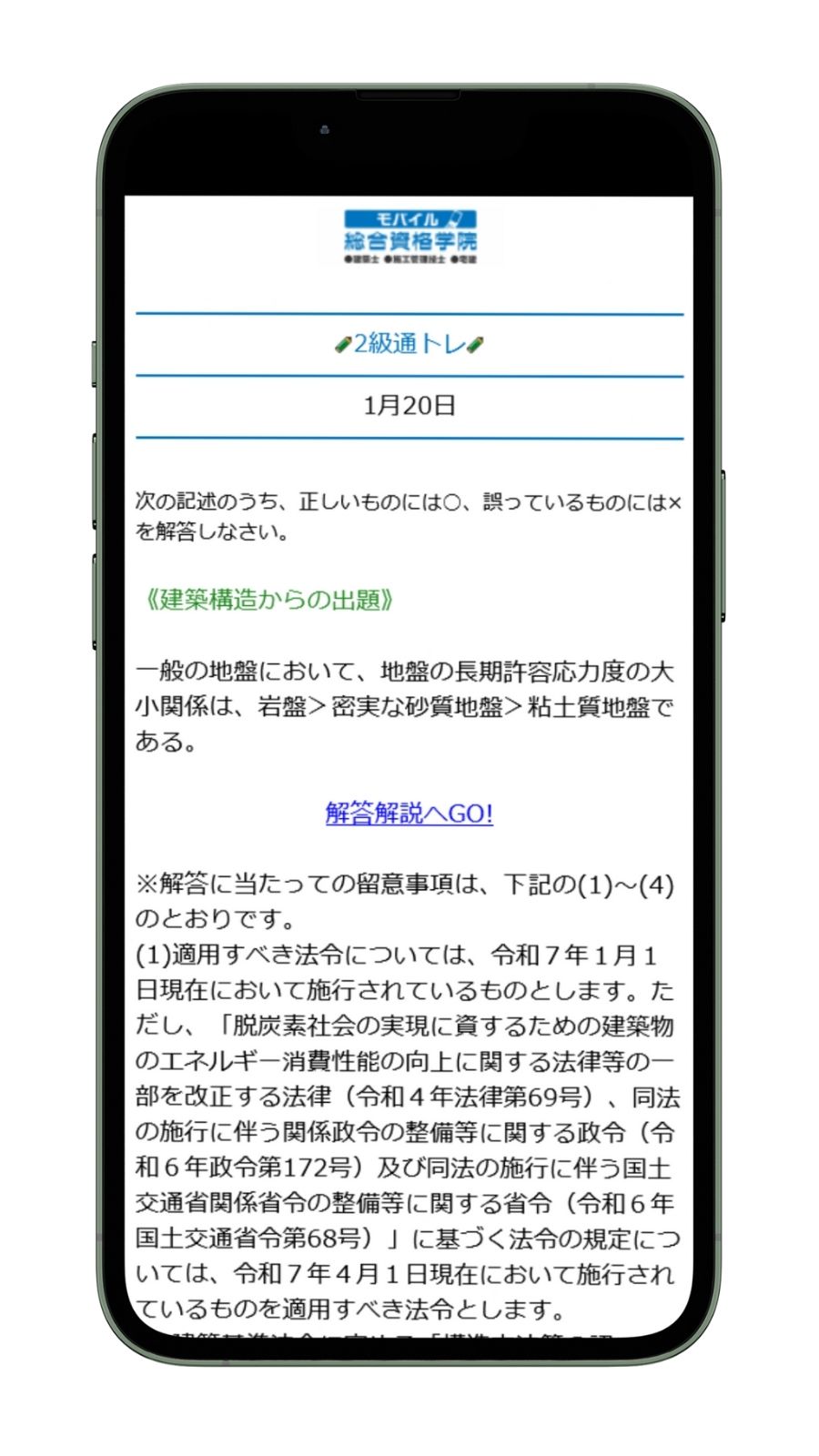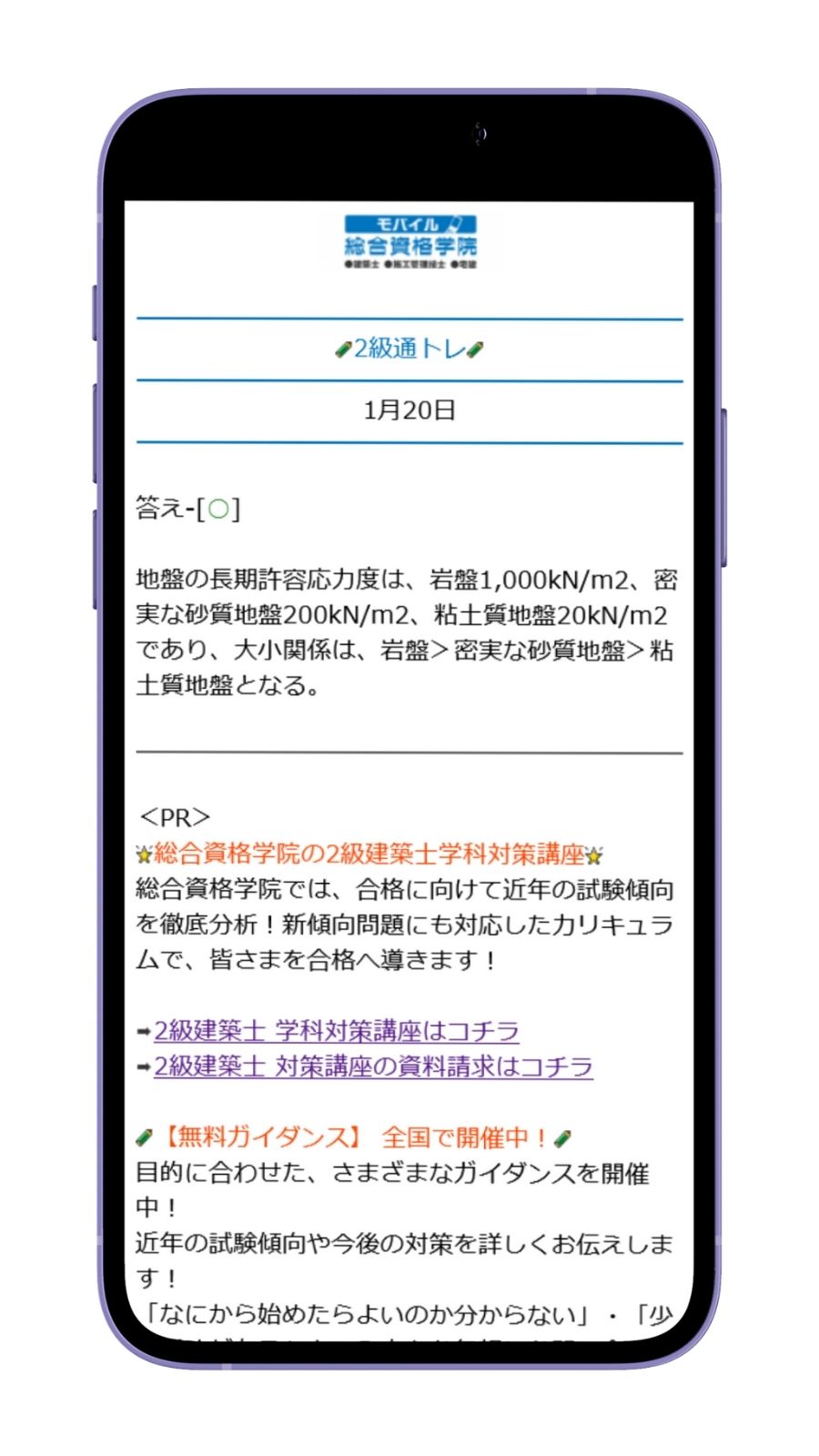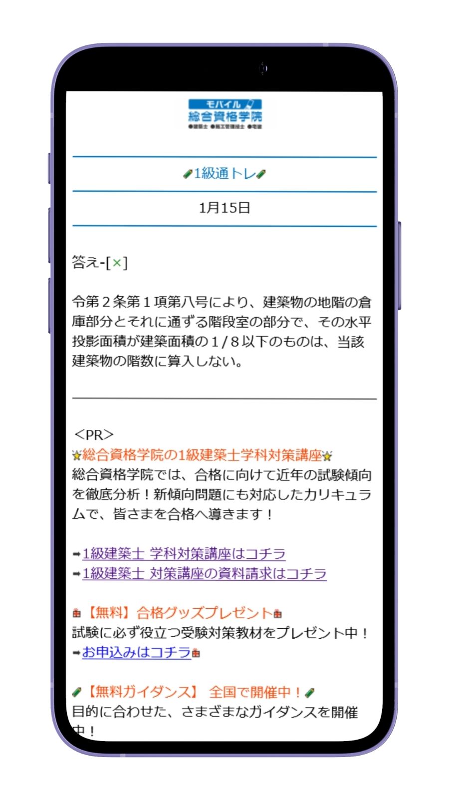 「通トレ」は、合格実績No.1指導校の総合資格学院が、1級建築士・2級建築士の学科対策問題を平日(※本試験までの月~金曜日)毎日、無料でメール配信するサービスです!